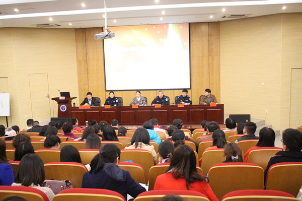 刑警大队警官李蓉详细讲述了网络上存在的10多种诈骗类型,并结合案件对网络诈骗作案特点和发案原因等进行了分析,重点阐述了针对不同诈骗类型应采取的防范措施。校保卫处张保卫还对校园内易发、多发的盗窃案件类型作了重点阐述,并结合具体案例,给大家剖析了案件原因及防范措施.