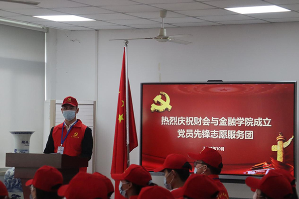 本网讯(通讯员:谷学颖)为喜迎二十大,深入贯彻落实习近平新时代中国特色社会主义思想,大力弘扬“奉献、友爱、互助、进步”的志愿服务精神、践行为民服务宗旨,增强我院师生党员的凝聚力,发挥党员在学校立德树人、服务社会等方面的积极作用,10月21日下午3时,在教12(207)会议室,财会与金融学院党总支隆重举行党员先锋志愿服务团的成立仪式。党总支副书记彭智及班子成员、党员志愿者代表参加仪式。