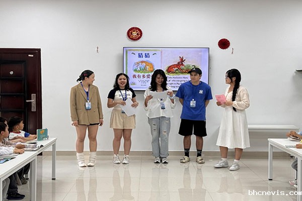 活动在梧桐社区党群服务中心三楼图书阅览室进行。活动中,来自印度尼西亚、吉尔吉斯斯坦、蒙古的留学生志愿者们用英文给社区小朋友们讲起了绘本故事。他们惟妙惟肖、声情并茂的表演,为孩子带来沉浸式英语学习体验。