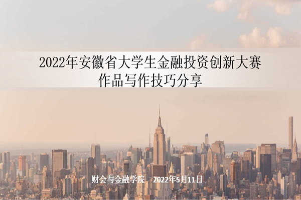 本网讯(通讯员:苏怡君)为进一步做好第七届“国元证券杯”安徽省大学生金融投资创新大赛各项工作,切实提升参赛队伍专项比赛作品的质量和水平,继4月20日开展线上参赛辅导培训之后,5月11日财会与金融学院再次举办作品撰写专项线上培训会。