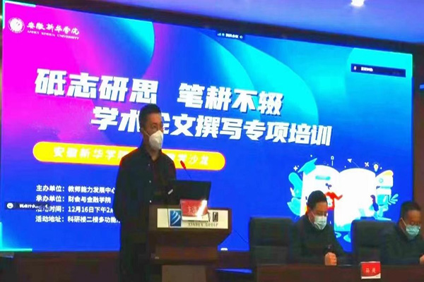 此外,安徽农业大学马克思主义学院孙超教授,作为安徽省学科带头人,安徽省委讲师团首批高端宣讲专家,介绍了“学术规范与学术论文写作”相关内容。孙教授在介绍什么是学术规范的基础上,告诉我们怎样进行研究,并介绍应该如何呈现研究成果。