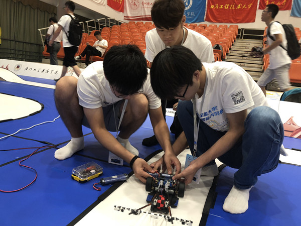 在省级赛的基础上,该队队伍师生利用暑期进行了周密准备。整个暑期,参赛师生没有休息一天,白天的高温,未曾让他们有任何退缩,夜晚静谧的校园里,他们房间的灯也时常亮到深夜。大家认真研究比赛规则,反复进行智能车的设计、测试、修改、完善,赛前又对全车及程序进行了严格检查,确保万无一失。最终,在有来自全国152所知名高校,343多支参赛队伍,一千余名师生参加的决赛中,“虎纹鲨鱼”队凭借扎实的功底、稳定的发挥,荣获2个组别国家二等奖。