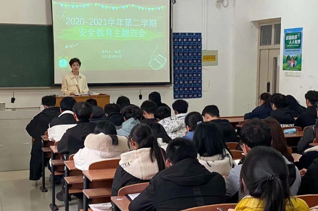 辅导员张婷婷把班会的主导权交给了学生们,她提前组织安排学生干部学习相关安全知识和杜绝安全隐患的有效方法。在召开班会时,让学生们上台主讲,用生动活泼的叙事方式,绘声绘色的讲述那些生活中安全知识。辅导员杨宏制作了安全主题的相关横幅,组织学生提前悬挂在教室中,将安全知识与安全意识时时呈现在同学们眼前,刻进大家的心里。老师们分班级、年级、线上、线下,用灵活的形式、生动的语言开展了多场安全教育主题班会,增加了学生的安全知识与意识,增强了学院的安全教育宣传氛围。