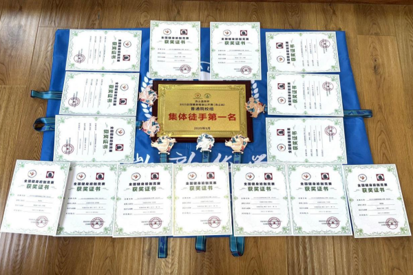 此次比赛吸引了全国29个城市52支代表队,共计480名选手参与,赛事分为社会组和院校组,设置了单人(男单、女单)、双人(混双、女双)和集体(徒手、辅具)三大项目,此外还增加了段位组。比赛每个项目竞争都很激烈,我校学子凭借顽强的斗志和拼搏的精神,在参加的每个项目上都取得了优异成绩。在普通院校组比赛中,女单共有35名选手参赛,我校女单队员马培悦在预赛排名第四的落后情况下,秉承着不到最后一刻决不放弃的体育精神,积极调整心态,在决赛中以零失误的高水平动作展示获得了决赛得分最高,总分排名第二的好成绩;而在段位组比赛中,共86名选手参赛,队员马培悦和朱成龙在激烈的角逐中,通过强大的心理素质和行云流水般的动作展示,最终获得了一等奖和二等奖。