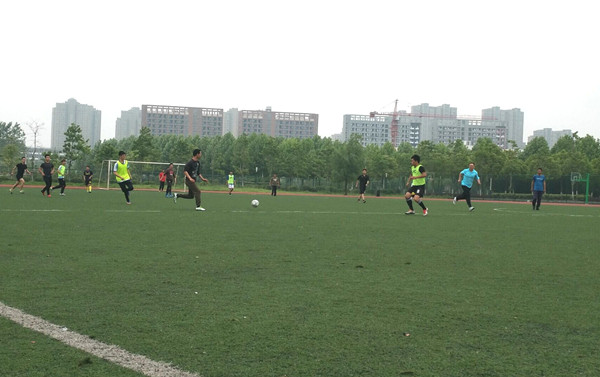 本网讯(通讯员:景欣)5月3日,一场师生足球友谊赛在我校祥云体育场如火如荼地展开,由通识教育部和各二级单位教职工组成的教职工联队对阵“新华杯”冠军队土木学院学生队。