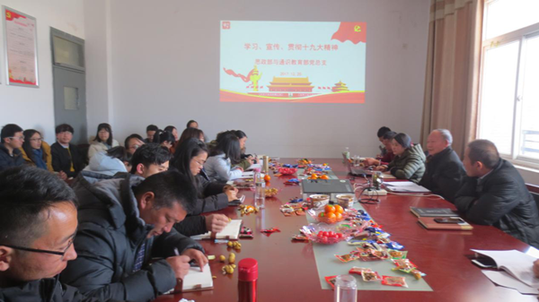 本网讯(通讯员:唐江花)12月20日下午,思政与通识教育部党总支在党员活动室组织开展“学习、宣传、贯彻十九大精神”系列活动,此次活动由思政与通识教育部党总支书记王士赵主持。