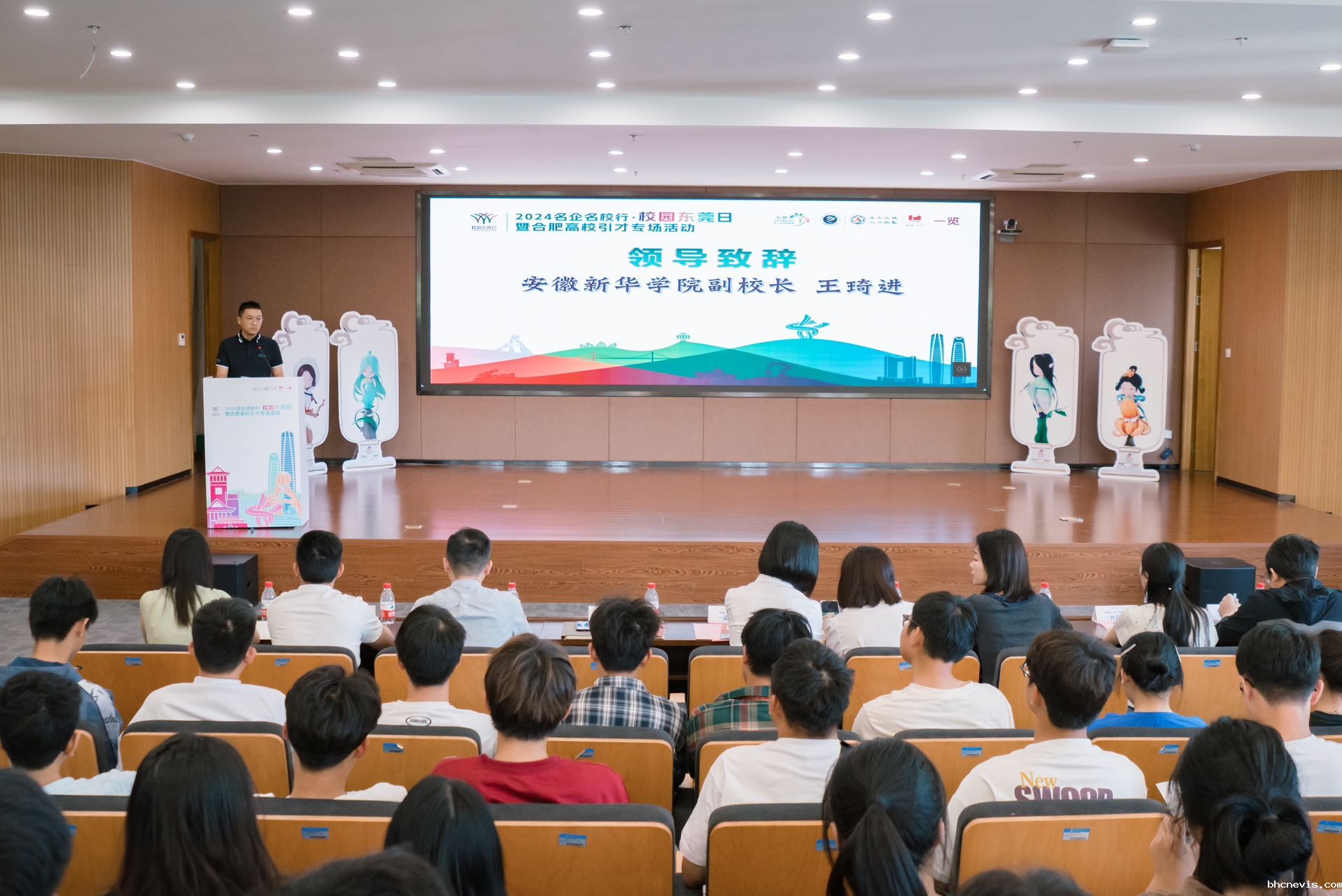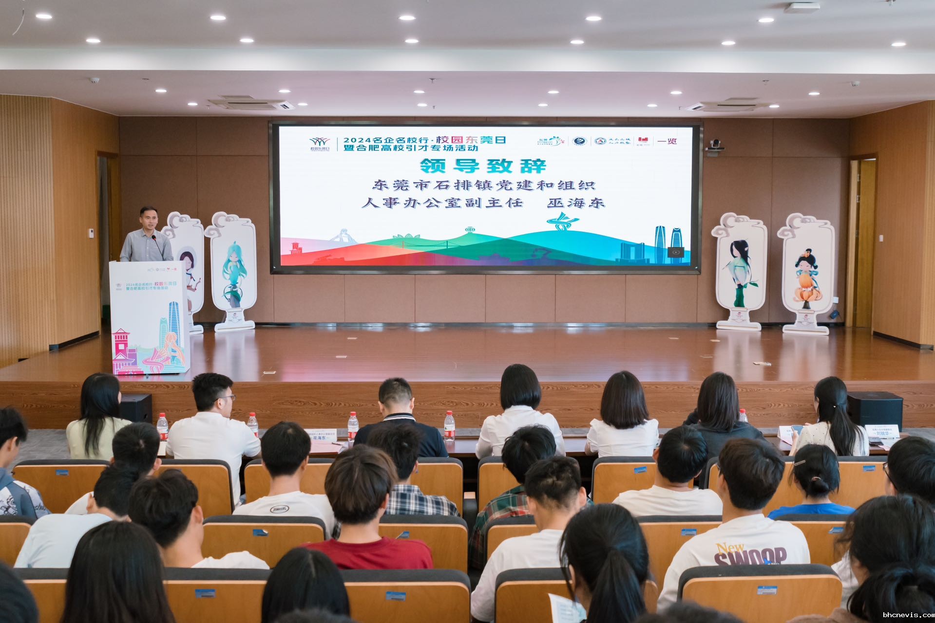 东莞市石排镇党建和组织人事办公室副主任巫海东介绍了东莞及石排镇在经济发展、人才引进等方面的显著成就与未来规划,为学子们描绘了广阔的就业前景与发展空间。