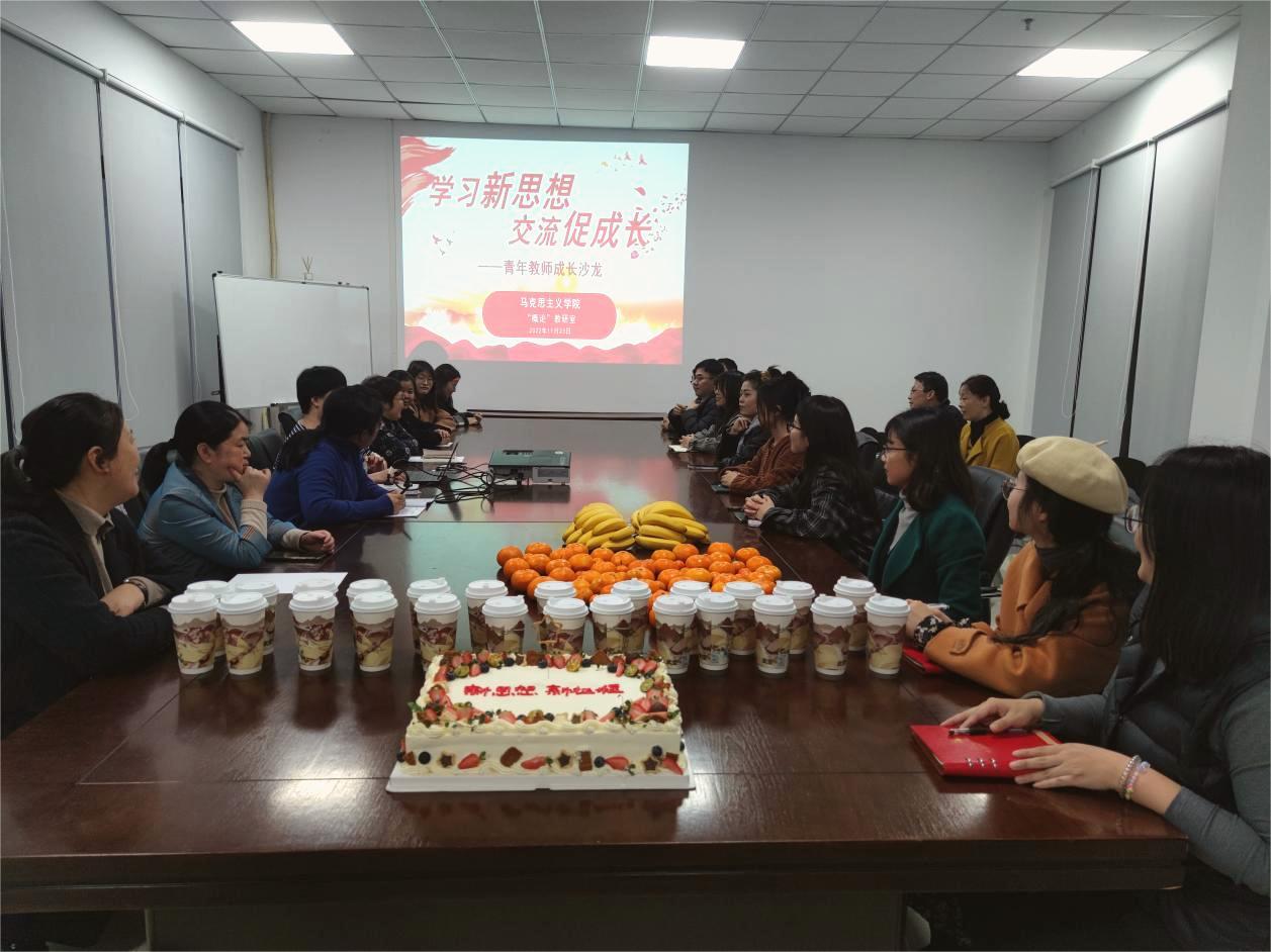本网讯(通讯员:宋苗)马克思主义学院为加快青年教师成长步伐,提升青年教师教育教学水平,11月23日“概论”教研室举办了“学习新思想,交流促成长”马克思主义学院首期青年教师成长沙龙活动,为青年教师的成长搭建学习、交流的平台。本次沙龙活动由教研室主任刘丽娟主持,副院长董丽娟、教研室主任王静、教学秘书章凤萍、各课程组负责人及“概论”教研室全体教师参加了此次活动。活动为参会教师提供了精美的蛋糕与茶歇,获得老师们的一致喜爱。