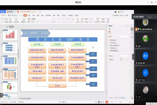 会上,中铁十局集团第三建设有限公司人力资源部负责人程阿龙进行专场讲解。通过播放了公司纪录片,全面展示了该公司的雄厚实力,接着通过播放PPT的方式详细的从服务范畴,行业优势,人才结构以及培养等方面向参会的同学做交流。他表明,公司急需土木工程、建筑学、安全工程等专业的人才;并且在线为学生解答疑问,他表示非常期待我校毕业生能加入公司大家庭。最后,程阿龙给毕业生提供联系方式及简历投递箱,毕业生根据需求投递简历,公司将尽快安排线上面试。