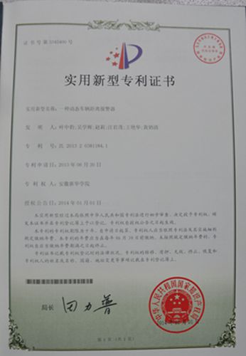 本网讯(通讯员 叶中豹 )近日,由土木与环境工程学院叶中豹老师主持研发的“一种动态车辆距离报警器”,顺利通过国家实用新型专利审核,成功获批。该专利权人为milan米兰官网,权利日自2014年1月1日起,专利号为ZL201320381184.1。