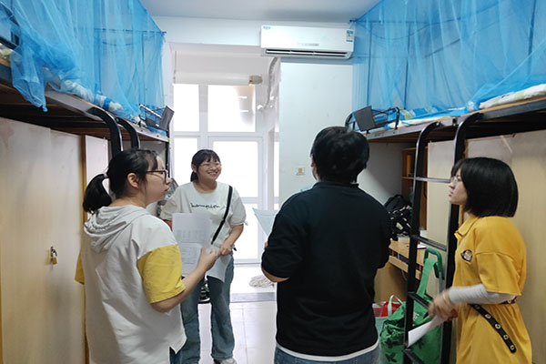 晚间,学院领导及学工人员深入宿舍走访慰问新生,通过深入的交流与询问,了解到新生对于今天入学工作的感受,并针对新生提出的问题进行答疑解惑,同时提醒同学们要注意自身安全,警防诈骗,遇到恶意办卡业务等及时上报。