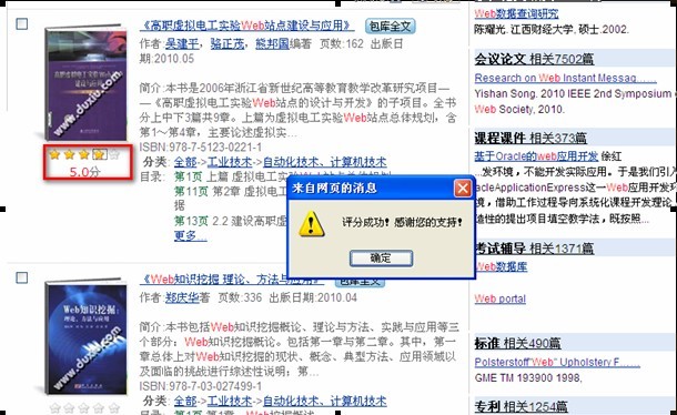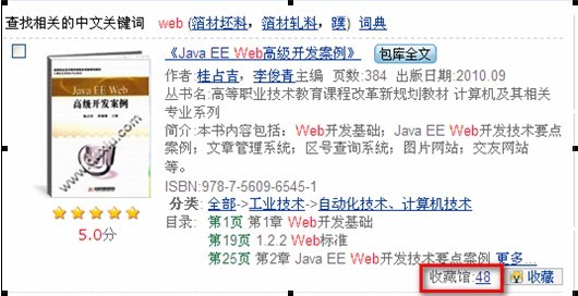 8.读秀检索页增加评星功能,用户可以给自己喜欢的图书打分了,可以通过看星星点亮的程度查看哪些图书受读者欢迎