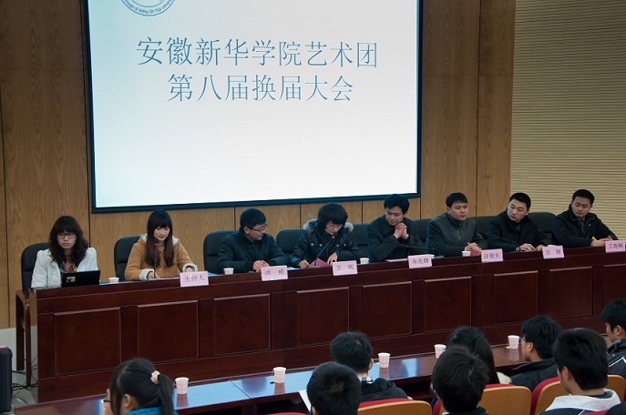 2月27日,校大学生艺术团第八届换届大会在学术报告厅隆重召开。学生处处长、团委书记朱兆健,学生处副处长汪俊东,校团委全体老师,各学生组织以及艺术团全体成员参加了大会。