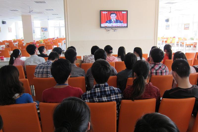 5月4日下午三点半,纪念中国共青团成立90周年大会在北京人民大会堂召开。校团委组织主要学生干部、优秀青年学生代表在文德苑观看大会直播视频。
