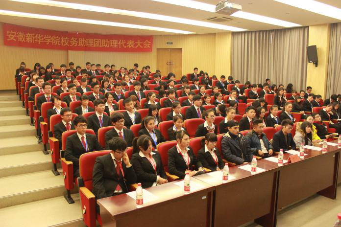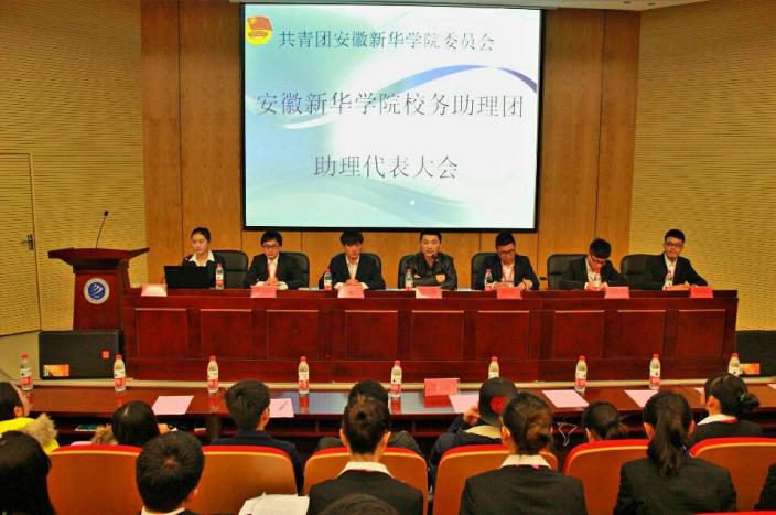 全体成员身着正装,齐聚一堂。会议用PPT演示的方式拉开序幕,首先全场共同回顾2014-2015年度的活动,介绍校务助理团第十届学生干部;随后全场起立,奏唱团歌。接着,会议审查和批准校务助理团关于新生助理考核管理制度,明确今后的工作方向。会议还听取和审议了五个管理部门的部长阶段性工作报告。期间,新助理们向部长们提出了自己的疑惑,从而更加了解校助,更有向上的决心和动力。最后吕翔发表总结性讲话,肯定了校务助理团这段时间的表现,并表达了未来工作的期望。在热烈的掌声中,第十届校务助理团助理代表大会会议圆满结束。