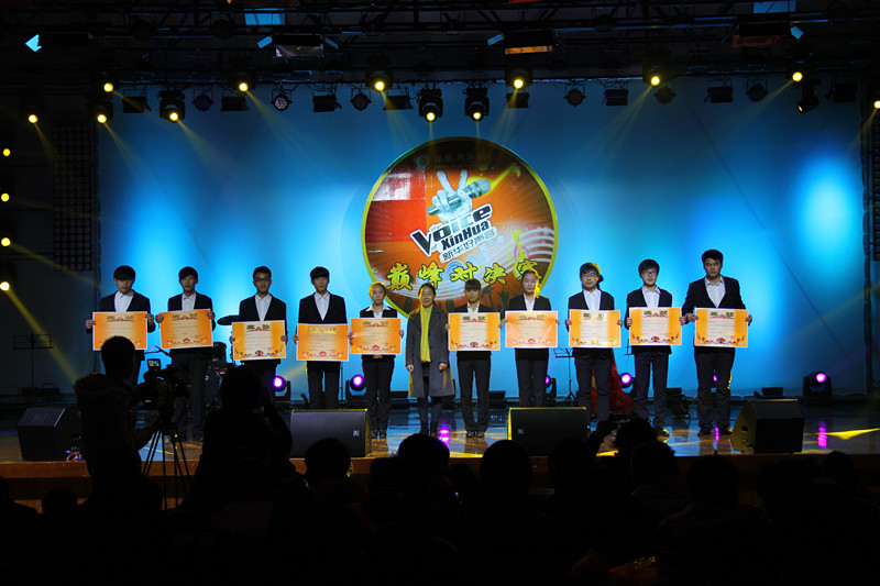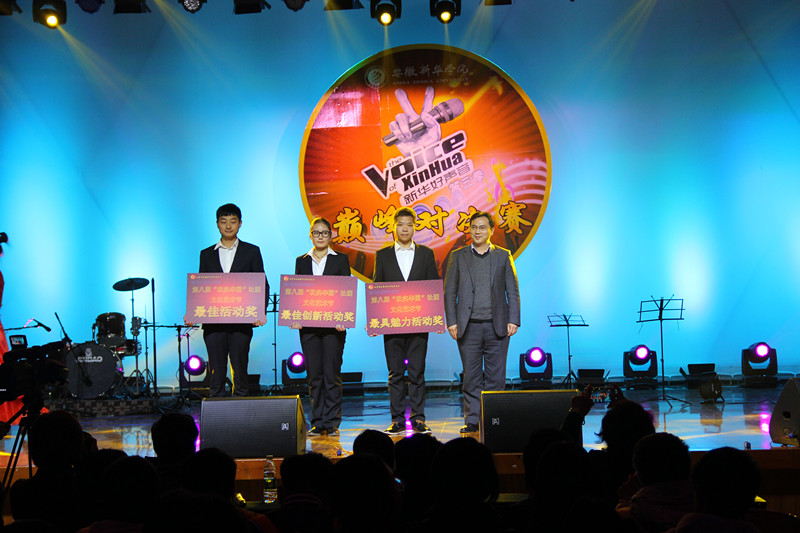“新华好声音”歌王争霸赛是校团委重点打造的校园专业歌唱比赛,是我校品牌校园文化活动,赛事得到了校内外的广泛关注。本次大赛吸引近800多名同学报名参加,各年级同学均积极参加,本次大赛由校团委主办,学生社团联合会承办。与此同时,为期一个多月的第八届“秋实华园”社团文化艺术节也落下了帷幕,经社团理事会评比,建筑与工程协会、科技与创新协会、书画协会等社团获奖。校领导陆真、王丽分别为获奖社团颁奖。