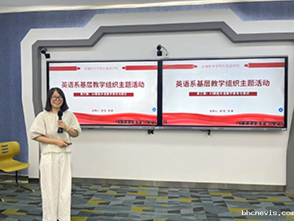 本网讯(通讯员:詹娜)为探索人工智能在外语教学中的应用,推动教学模式创新与教学质量提升,5月14日下午外国语学院英语系在教10-101智慧教室成功举办了第三期基层教学组织主题活动——“AI赋能外语教学思考与研讨”,本次活动由高级英语基层教研室主办,由胡钰和詹娜两位教师主讲。外国语学院院长助理张丽、英语系副主任李怡嘉及英语系全体教师共同参加,活动由李怡嘉主持。
