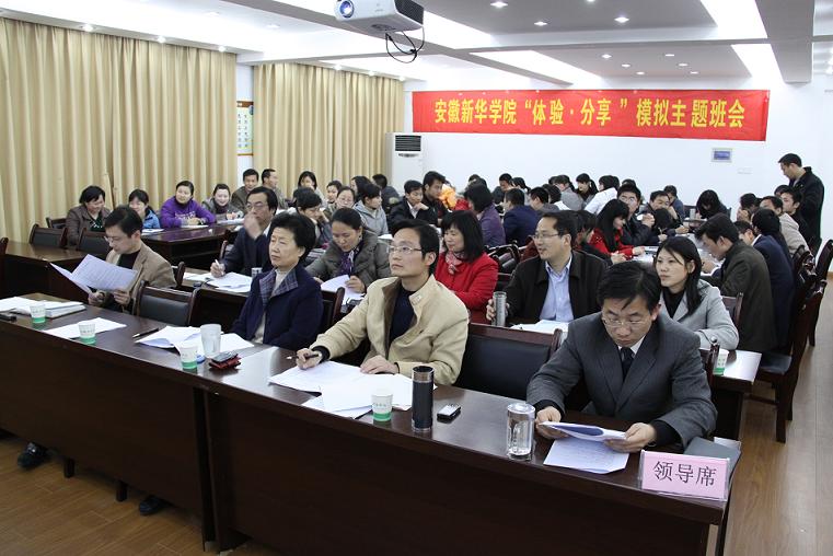 为了加强我校的班会建设,推动主题班会工作的顺利开展,保障班会例会制度的正常进行,学习和借鉴组织班会工作的方法和经验,我院于3月31下午组织了“体验·分享”模拟主题班会。学院党委副书记、副院长张可君,人事处副处长,各二级学院行政负责人、学管秘书及全体专职辅导员参加了此次模拟班会。