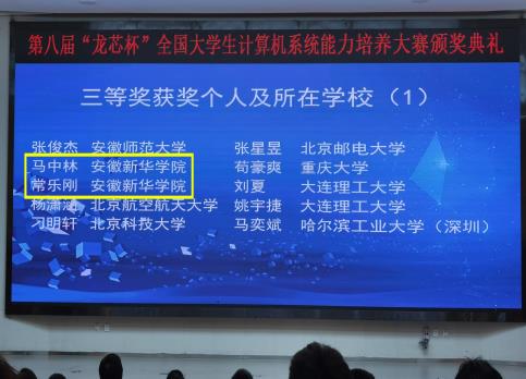 本网讯(通讯员 朱学玲)第八届“龙芯杯”全国大学生计算机系统能力培养大赛总决赛于2024年8月16日至18日在重庆理工大学举行,我校大数据与人工智能学院的马中林和常乐刚同学入围决赛并获得个人赛三等奖,朱学玲老师再次获得“优秀指导教师奖”。  ...