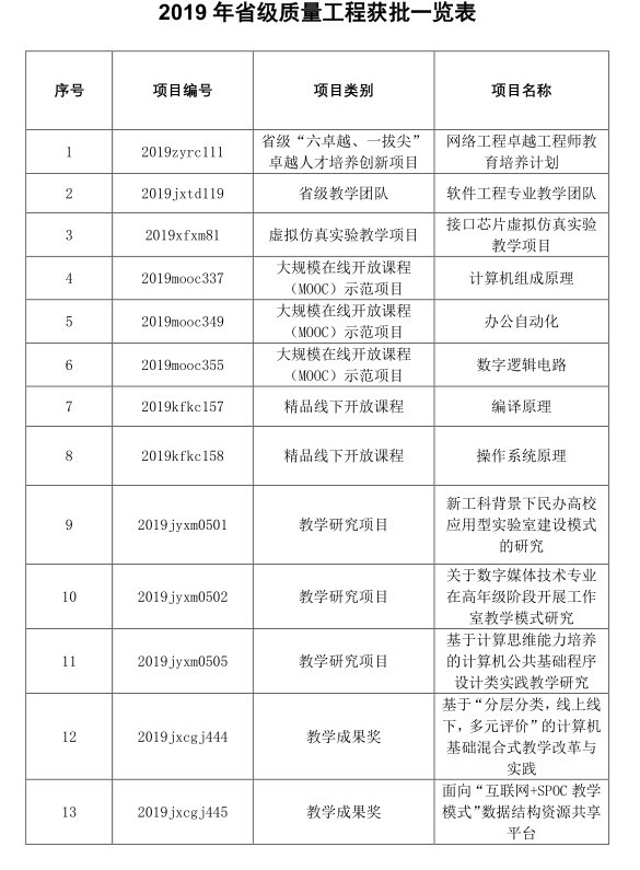 2019年省级质量工程获批一览表