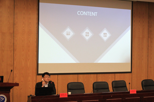 王庆从“VR是什么”入手,向同学介绍了其历史发展的四阶段及VR技术的多感知性、存在感、交互性、自主性四大特征;对动态环境建模技术、立体显示和传感器技术、系统开发工具应用技术、实时三维图形生成技术这几个VR的核心技术进行了详细阐述;其间还穿插了华为、HTC、中金公司、淘宝网对于VR技术的应用实例,就VR的市场前景和应用范围举行了展望。最后,王庆就VR设计人才知识结构要素以及大学生如何紧跟技术前沿等问题与现场师生进行了互动。