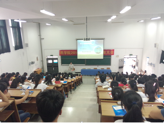 金斌教授与同学们分享了自己艰苦学习药学经历,并围绕“如何读大学”的主题,鼓励同学们努力学习和充实自己的大学生活。金斌教授给2014级新生提出了几点建议:在大学里要意识志存高远,刻苦学习;培养兴趣,享受生活;探究药学,巩固学业。