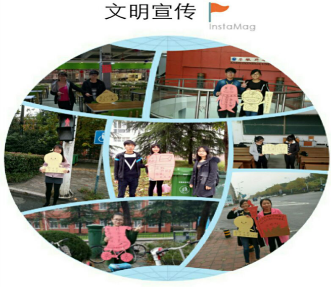 本次活动内容包括制作文明指示牌再兵分七路去放置指示牌,放置的地点分别是:图书馆、自行车停放处、红绿灯路口、阶梯教室、花草树木旁、垃圾桶旁以及食堂。举办此次活动时天正下着雨,但在同学的脸上丝毫没有看见一丝的不悦之色,反倒都洋溢着喜悦的笑容,相信他们也一定觉得这是一件很传播正能量的事情吧!