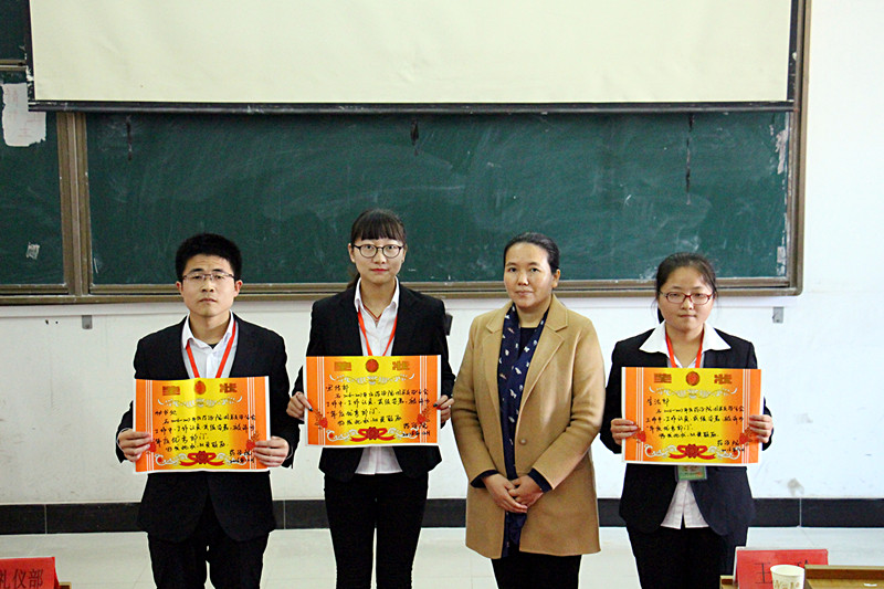 大会开始前,全体参会人员共同观看了药学院本学期的精彩活动剪影PPT。随后,药学院学管秘书刁欢从党团建设、学风建设、团学活动、建院十五周年系列活动、获奖情况等方面作了详细的工作总结,对表现优秀的班级和个人给于充分的肯定和赞许,同时希望大家能更好更全面的挖掘潜能,实现自我锻炼和成长目标,展现出大学生的精神面貌。紧接着药学院行政秘书汪涵涵宣读了关于药学院活力团支部活动、感恩征文活动、院徽设计大赛等7项活动表彰决决定;药学院辅导员徐明月、王玲、李春杰为获奖同学代表颁奖并合影留恋。最后,余立新对这次大会做了总结,重点提出药学院建院十五周年所举办的多项比赛和建院晚会,充分肯定参与学生和学生会组织者的辛苦付出与取得成果;最后她对各项活动中获奖的班级和个人表示祝贺,也希望大家能将今后的工作做得更好。
