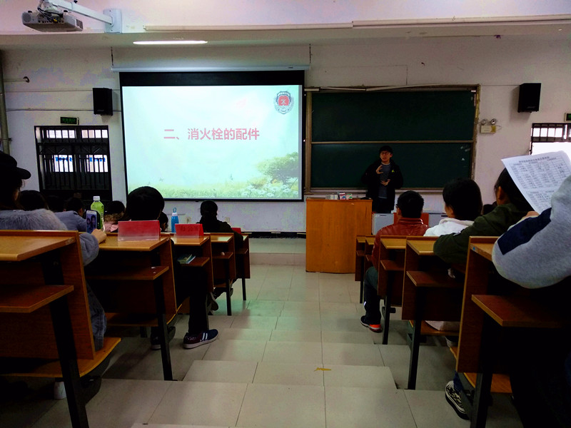 首先是基本消防安全制度和相关法律法规的学习,旨在使大家形成基本消防观念。接着,常规消防设施的介绍和灭火器等的使用方法及原理。最后,结合案例来增强学生们的安全意识,在场人员反响强烈,同时丰富了学生们的消防知识,增强了消防意识。
