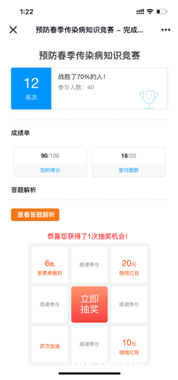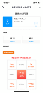 本网讯(通讯员:赵影)2020年3月9日,为响应国家“向雷锋同志学习”的号召,了解广大学生对健康理论及行为的认知,进一步提高大学生健康生活意识,药学院在PU口袋发布了健康小常识问卷调查的线上活动。