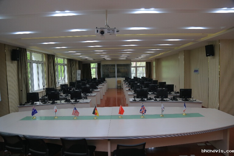 教学实训室种类齐全,设施先进,完全能够满足学生学习、实践需要。共有15间语音室,10间多媒体教室,8间视听说教室,2间口语情景教室,1间笔译教学实训室,1间口译教学实训室,1间商务外语教学实训室;建有校外实习基地12个,充分满足学生实习实训需要。